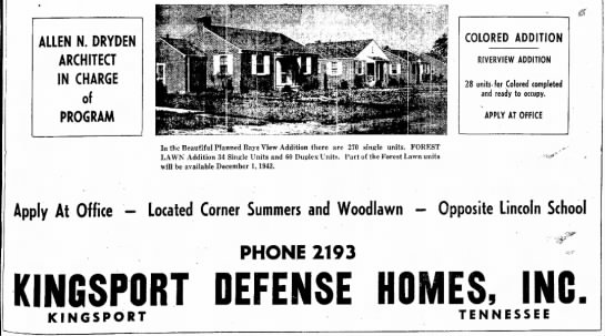 In 1943, Kingsport Defense Homes, Inc. took much of the former golf course for ‘speed brick’ homes on Morningside, Magnolia, Waverly, Garden, and the 1400-1500 blocks of Carolina, Pineola, and Woodside (East Sevier). They called it, “Bays View”. The homes could be built quickly to accommodate the swell of wartime housing demand being driven by the growth of Holston Army Ammunition Plant and other burgeoning industries.