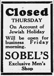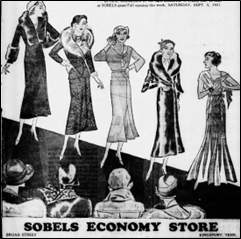 Morris Sobel, Norman’s father, was born in Poland in 1901. He is buried in the B’Nai Shalom Cemetery in Bristol, Virginia. His headstone identifies him as a Levite, one of the twelve tribes of Israel. He came to Kingsport to run “The Economy Store” on Broad Street in the mid-1920s, where you could buy on credit for the same price as cash. This was an important new concept because it was the height of the Great Depression. He traveled to New York and brought back the latest in fashion. By 1931, it was being advertised as Sobel’s Economy Store. In 1932, it expanded from the east side of Broad Street to the west side. By 1933, it was just “Sobel’s”. On October 16, 1940, he registered for World War II to defend his new country at the age of 35. Shortly after that, Sobel’s moved to its final destination, 200 East Center Street.