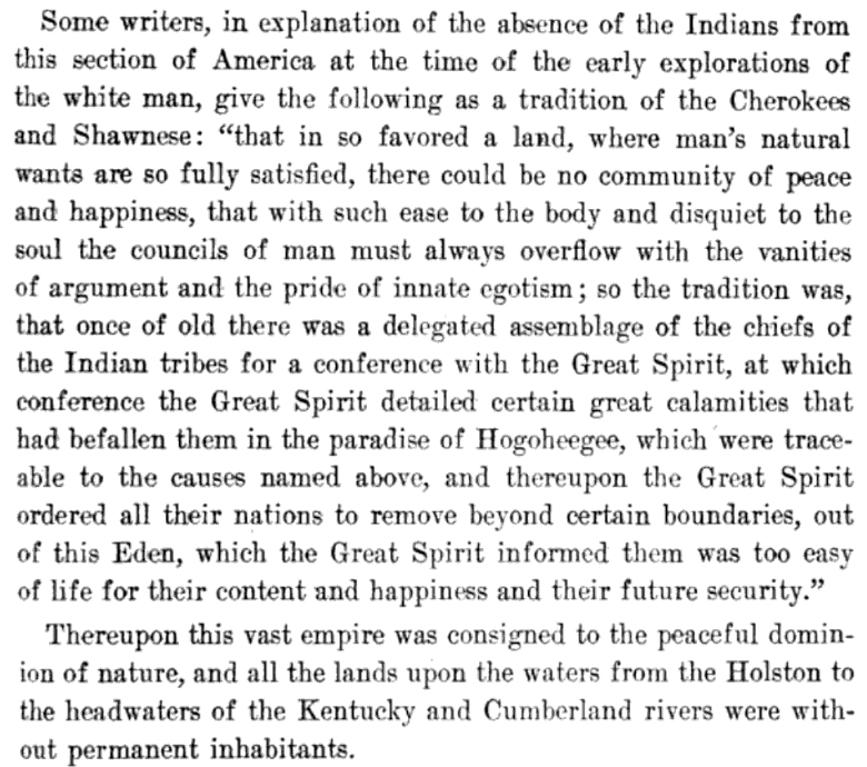 In it, I found the following passage describing our region. And although it doesn’t say so, the “delegated assemblage of the chiefs of the Indian tribes” might have been held on Long Island, the sacred Cherokee meeting place which is now in Kingsport, Tennessee: