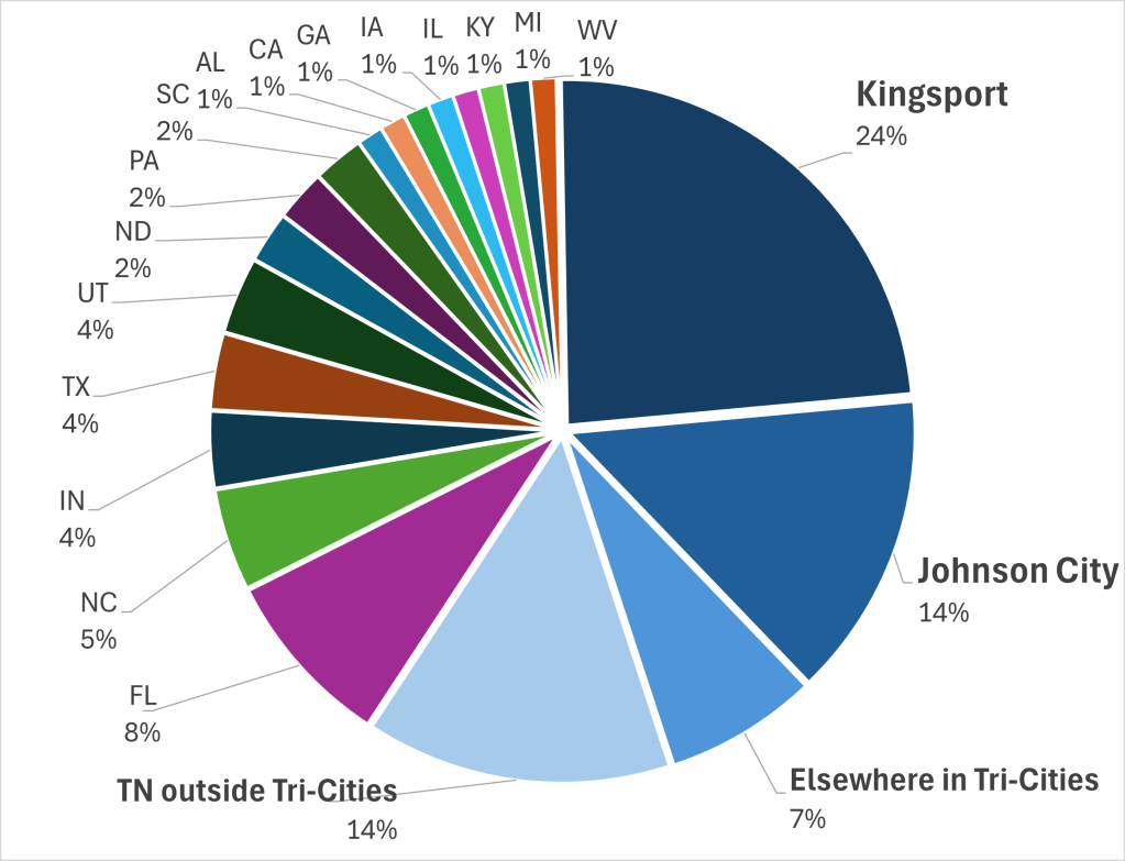 25% already lived in Kingsport. This means they freed up their previous home for someone else to live here, too.
