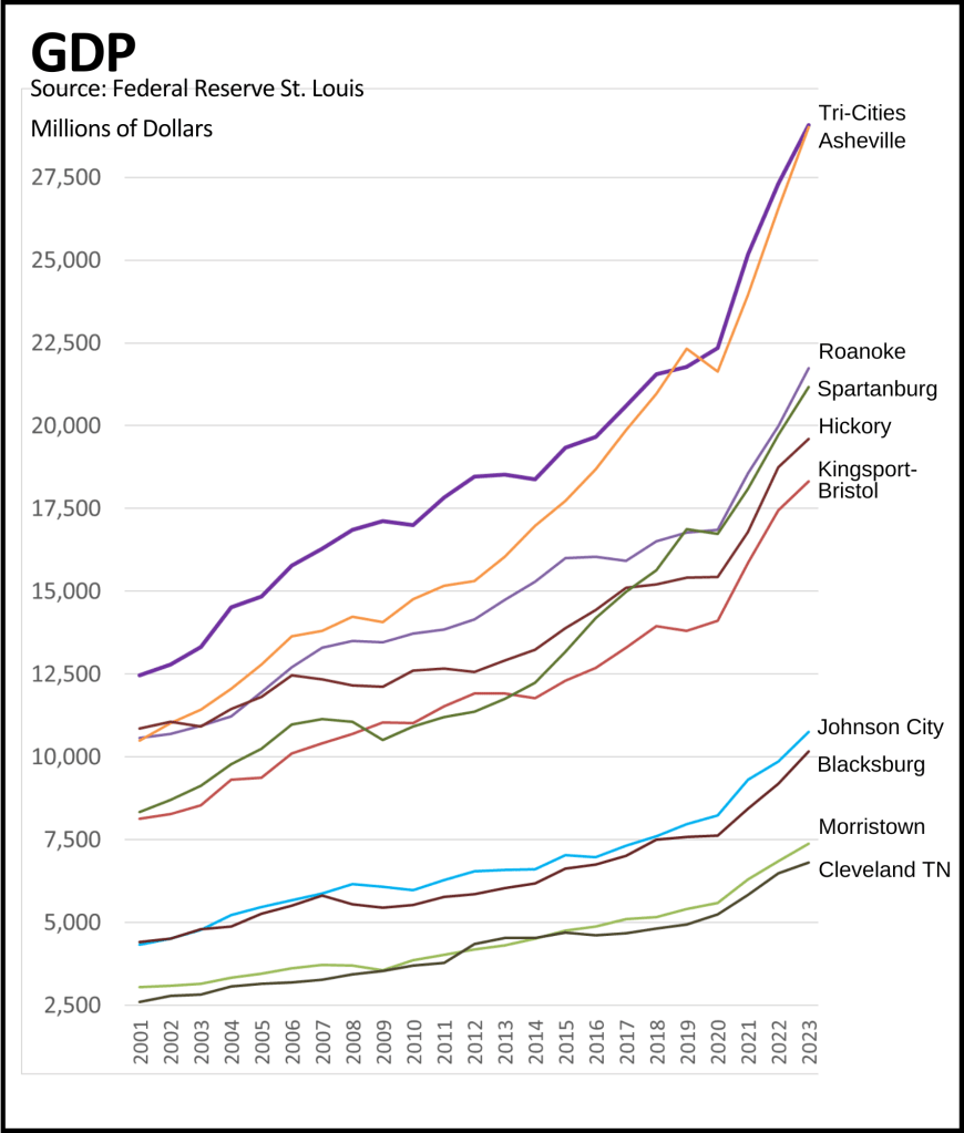 Tri-Cities leads among comparably sized metropolitan areas in East Tennessee, Southwest Virginia, Western North Carolina, and Upstate South Carolina, all of which have seen an influx of new residents since 2020.