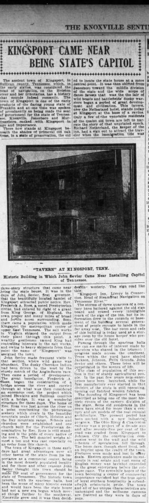 I have found no scholarly evidence to substantiate this newspaper’s claim, yet it does highlight that Kingsport played a role—at least in local memory and tradition—in the broader conversations surrounding the foundations of Tennessee statehood.