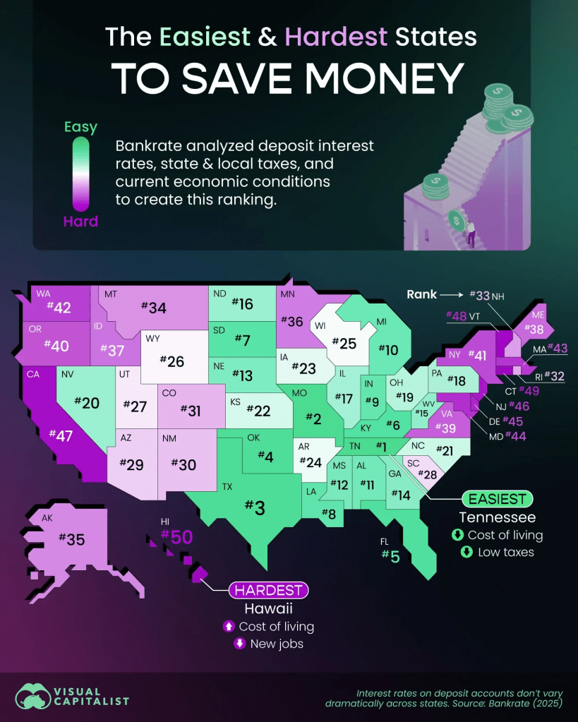 Bankrate’s new 2025 study on the best and worst states for saving money confirms what many of us already sense: where you live can make or break your ability to build a cushion. Tennessee ranked #1 in the nation, thanks to low taxes and a cost of living that still beats the national average. That isn’t just a statewide statistic—it’s a reality we see every day here in Kingsport.