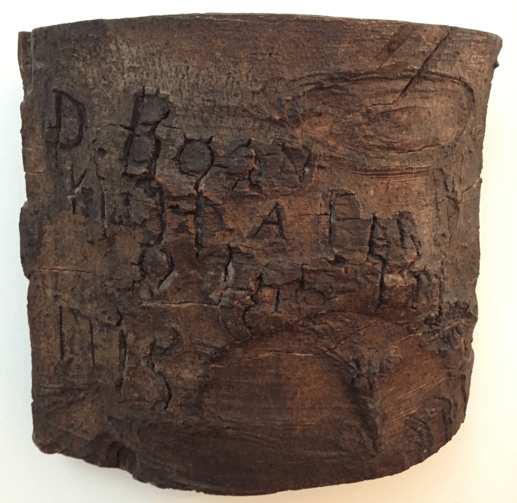 Family legend says that John M. Preston found this tree while riding over the farm (some stories even claim that the Boone Tree was the reason Preston wanted the property to begin with.) Not long after acquiring Exchange Place, Preston cut the tree down and preserved the portion bearing Boone’s inscription. This portion still hangs in the Preston-Stuart home (“The Bank”) in Abingdon today. A facsimile hangs in the Main House at Exchange Place.