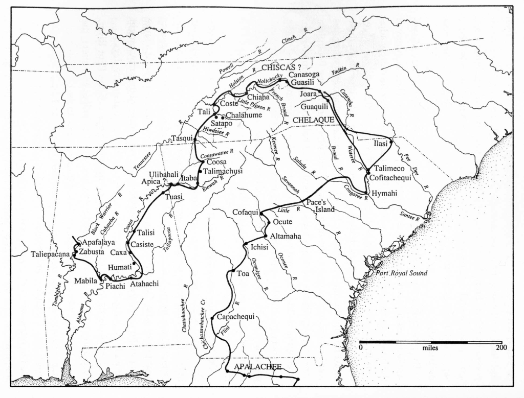 The first documented European contact is the Spanish explorer Hernando de Soto in 1540 when he crossed into today’s Northeast Tennessee (near modern Erwin) following the Nolichucky River, staying weeks at Chiaha/Olamico on Zimmerman’s Island (now under Douglas Lake) near modern Dandridge, then moving to Coste at Bussell Island (mouth of the Little Tennessee), up to Tali/Toqua site (modern Vonore, TN), crossing the Hiwassee, and exiting by the Ocoee–Conasauga portage toward Coosa (modern Chatsworth, GA). In 1566–68 Juan Pardo‘s expedition from Santa Elena (modern Beaufort, SC) led to the building of interior forts to secure Spain’s route, including Fort San Juan at Joara (Morganton, NC) and Fort San Pedro beside Chiaha (Dandridge). Natives destroyed the garrisons within a year, ending Spain’s inland foothold. The Pardo party’s documented travels include a trip up the middle fork of the Holston River to Chisca (Saltville, VA). After epidemics and upheaval, native peoples coalesced into new communities; by the late 1600s the Cherokee Overhill towns were rising in the Little Tennessee valley. English traders pushed in from Virginia and Carolina—most notably James Needham and Gabriel Arthur (1673–74), who reached the Overhill towns to open direct trade. Meanwhile, on the Mississippi, the French appeared: in 1682 La Salle passed the Chickasaw Bluffs (modern Memphis) and briefly stockaded Fort Prudhomme in West Tennessee while claiming the valley for France; by the 1680s–90s, Shawnee villages and a French post stood at French Lick (present-day Nashville).