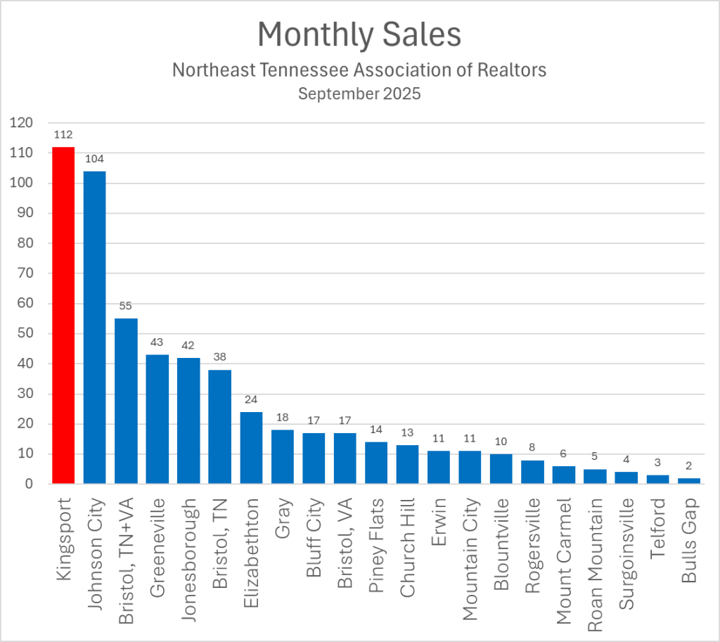When you adjust for population, Kingsport’s strength becomes even clearer. With roughly 1.28 home sales per 1,000 residents, Kingsport outperformed Johnson City (1.07), Bristol (0.82), and Greeneville (1.17).
