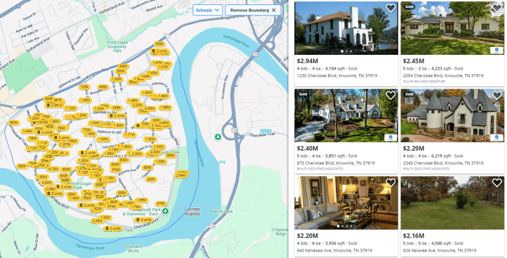 Sequoyah Hills (Knoxville), 199 homes sold past 3 years, $200,000-$4,500,000