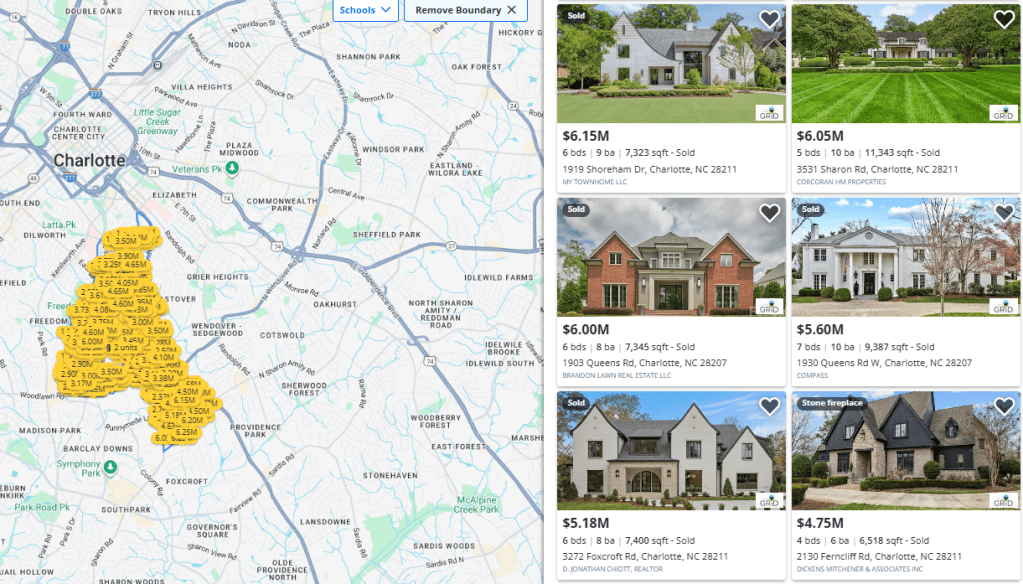 Myers Park (Charlotte), 362 homes sold past 3 years, $650,000-$6,500,000