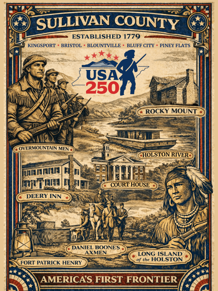 I’m excited to be working with the Sullivan 250 Committee. Great partners across the county. We recently created this 12 x 16 poster to complement the state’s poster (https://tinyurl.com/TN-250). They look beautiful framed side by side. We’re planning to give away 250 copies at our upcoming event at Rocky Mount State Historic Site. Watch for announcements!