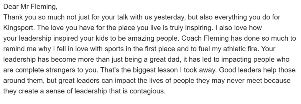 There is something meaningful about speaking with young people who are still discovering who they are and who they are becoming. One of the best parts of our local high school leadership class is that the teacher asks each student to send a thank-you note to every guest speaker, reflecting on what they heard. Often, what students take away is not exactly what was expected. And every now and then, one of those notes becomes a deeper reminder.